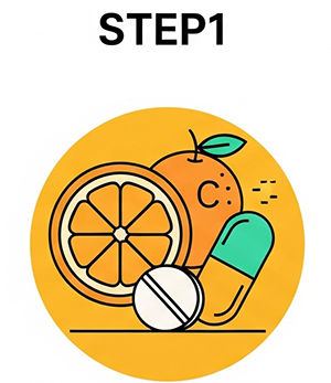 まずは、点滴のベースとなる高濃度ビタミンCを選びます。ビタミンCは強力な抗酸化作用を持ち、コラーゲン生成、免疫サポート、疲労回復など幅広く働きます。当院では濃度や製剤の種類をお選びいただけますので、美容目的から体調管理まで対応可能です。