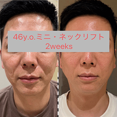 友人の紹介で松宮先生を知りました。たるみの原因や自分の状態をしっかり説明してくださり、信頼できました。(略)たるみに悩んでいる方は、ぜひ一度相談されるといいと思います。ミニリフト(40代男性)