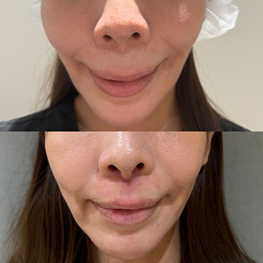 鼻の下の皮膚をM字型に切除することで、人中を短縮しつつ、上唇の中央に自然なくぼみを形成します。