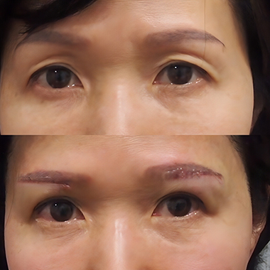 眉毛の下のラインに沿って余分な皮膚を切除し、まぶたのたるみを改善します。